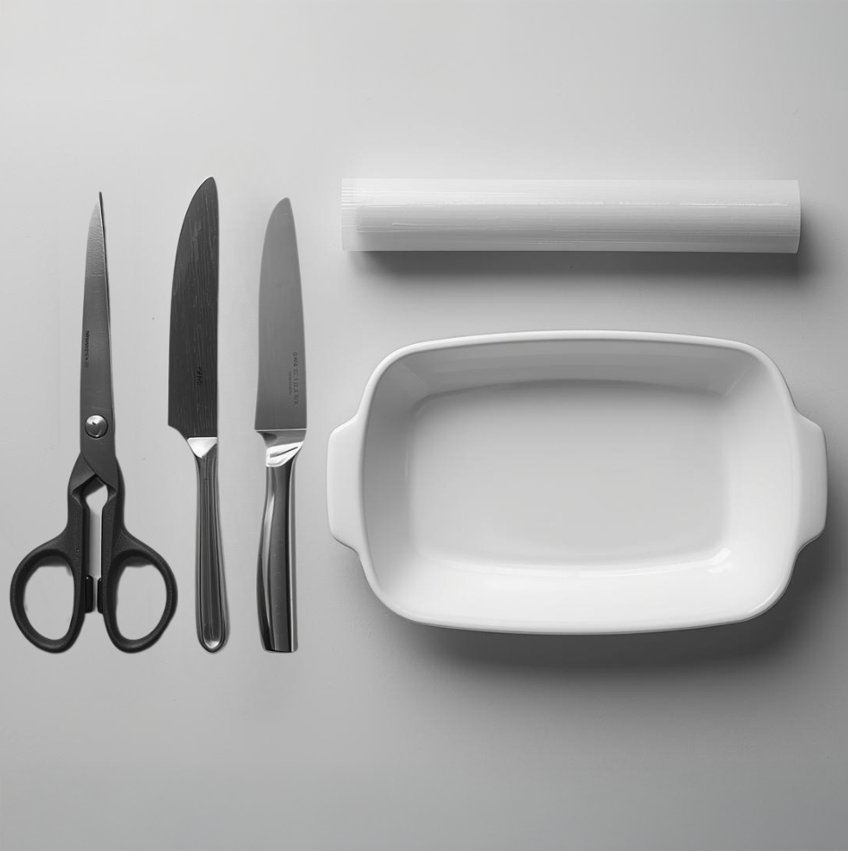 Ici je vous conseille un coûteau pour étaler le fromage frais et un coûteau bien aiguisé pour couper les tronçons de wrap, c’est surtout par commodité.